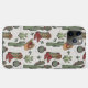 This festive country Christmas phone case features a pattern of hand-drawn western illustrations of a pine wreath with cowboy boots, cowboy hat, holly berries, cacti and vintage xmas ornaments among stars and the hand-written words, "Howdy Christmas".