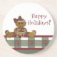This beautiful sandstone coaster would make a lovely addition to your Christmas decorating, with its quaint, country gingerbread woman holding a container of cookies. It would also make a great Christmas gift. The text is customizable.