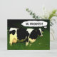 A dark inked style image of the traditional black and white holstein milk cow with a full udder and a thought bubble with the words "We moooved!" This makes the perfect invitation for a country housewarming party, or customize the details to use as a change of address notice. Perfect for dairy farms, country folks, dairy product retail outlets etc.