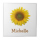 Floral country ceramic tile with a yellow sunflower bloom image. Light brown lettering can be personalized with your own information, perfect for adding a rustic touch to your kitchen home decor.