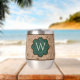 This insulated wine tumbler has a hand drawn floral pattern with a rustic feel. It has the perfect look for your next camping trip or outdoor get-together. This classic brown and tan flower design has a nostalgic feel with sketch like line art and distressed details. Customize this cute and girly insulated wine tumbler with the owner's monogram/initial in forest green for extra personal detail. Celebrate your style with this classic country girl aesthetic accessory.