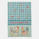 Country Folk Art Chickens On Blue Gingham Check Kitchen Towel