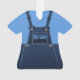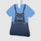 A graphic design of bib overalls by artist/designer Charmaine Paulson on a ornament.