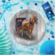 A photograph of a horse and carriage on a woodgrain background.