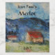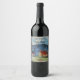 Easily personalize the text on this beautiful red wine bottle label which presents a pretty, impressionistic rural landscape scene. A rustic white country house with a red roof is situated on a grassy field with flowers. A blue mountain looms behind. Clouds float in the sky.