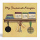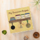 A background in soft yellow, decorated with prim folkart pictures of kitchen utensils and spices. The perfect design for your favourite recipes, also great as a gift from a mom to her daughter or daughter in law to share her way of home baking or cooking. Customize the title with your own text!