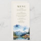 Wedding Menu with watercolor design featuring a charming rustic wedding barn nestled on the shores of a tranquil lake, framed by majestic mountains and towering pine trees. The watercolor country scene captures the serene beauty of a sunlit day, with the barn's warm wooden hues perfectly reflected in the still waters. Ideal for a rustic barn wedding, this design complements celebrations in cabin-themed settings or charming countryside venues. Its tranquil lakeside ambiance suits a lakefront wedding reception, combining the romance of a romantic mountain wedding with the relaxed charm of a woodsy outdoor wedding. Whether you’re planning a spring lakeside wedding or a fall mountain wedding, this design sets the perfect tone for a day steeped in rustic elegance and natural beauty. Browse my Country Lake Wedding collection for co-ordinating invitations, stationery, signs and wedding décor. Message me if you need me to add any additional templates.