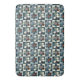 Cute country pattern features a 4-panel repeating graphic of patchwork button flowers in shades of blue with complementary colours.