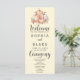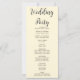 Flipping to the back reveals a neatly organized list of the wedding party, presented in a sophisticated layout. The text, predominantly in a harmonious combination of black and grey, offers a clear and modern presentation. Notably, the words Welcome, Ceremony, and Wedding Party are elegantly scripted, creating a stunning contrast with the rest of the text, enhancing the overall aesthetic appeal.
