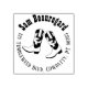 This personalised return address rubber stamp has a pair of leather cowboy boots. It has a sample name and return address in a Western style font in a circle around the boots.