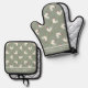 Add a charming touch to your kitchen with this delightful oven mitt and pot holder set featuring a classic country rooster pattern on a sage green background. Perfect for protecting your hands and surfaces, this set combines both style and functionality. Customize with your name or a special message to make it uniquely yours or as a thoughtful gift. Ideal for adding a rustic yet elegant feel to your kitchen decor, this set is both stylish and practical, making it a perfect addition to any home.