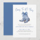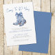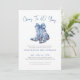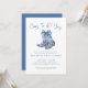 Something Blue Before I Do! Elegant Cowboy Boot Bridal Shower Invitation. Celebrate the bride-to-be with a touch of country charm and sophistication. This invitation features a pair of fancy blue cowboy boots at the top, adorned with a large watercolor bow. The boots are decorated with a floral or chinoiserie-inspired pattern, adding an elegant twist to the rustic theme. The phrase "Something blue before I do!" is written in a stylish mix of dark blue and grey fonts, combining handwritten script and classic serif typography for a polished, modern feel.