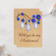 Planning a wedding? You need your friends to hold your hand, help you organize, and make you look perfect on your special day. Popping the question is easy with this will you be my bridesmaid card. Personalize the card by changing the text in the fields provided. You can change font style, size, and colour, paper type and style.