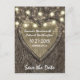 Country Rustic Carved Oak Tree Save The Date Cards - features an oak tree bark background with a carved heart and string lights. See the entire matching collection in this design below.