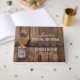 This guest book is perfect for any rustic country themed bridal shower. The design features a bouquet of wild lavender flowers, wrapped in burlap and standing in an elegant mason jar. The design has a wonderful rich wood background which is simply perfect for any barn or woodland celebration and is complete with editable wording. Easily customize this design with your special event wording and be sure to include the matching items for that very special finishing touch.