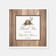 The design features a monogram tree design on a rustic wood effect background.