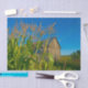 Country farm rustic old barn digital paint art design. Western farmhouse inspired blue green craft decoupage tissue paper. Image copyright Marg Seregelyi Photography.
