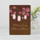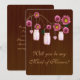 Every bride's perfect day includes her friends. Who do you trust to give a speech and perform duties like helping you choose bridesmaids' dresses so your wedding plan goes off without a hitch? Whether it's your responsible sister, cousin, niece, or your best friend, this "Will You Be My Maid of Honour" invitation is a fun way to ask. Personalize the card by changing the text in the fields provided. You can change font style, size, and colour, paper type and style.
