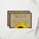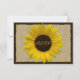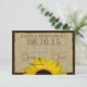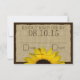 Typography style rustic country invitation with the vintage look of burlap and accented with a bright yellow sunflower.