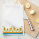 A Tea Towel or Kitchen Towel, with a border of Pot Marigold flowers, top and bottom. Part of the Posh & Painterly 'Marigold Medley' collection