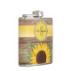 Country Sunflower Vintage Wood Monogram Hip Flask