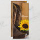 Customize the charming Country Sunflower Western Quinceañera Party Menu with the details of the meal that you will serve at your rural farm or ranch style barn party sweet fifteen celebration event by adding the salad or first course, entree or second course and dessert or third course. This charming custom rustic sweet 15 menu features a quaint floral photograph of a yellow sunflower blossom, brown leather cowboy boots and barn wood. Perfect inspo for your cowgirl or vaquera.