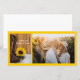 Send thoughts of appreciation and gratitude with the charming Country Sunflower Western Wedding Thank You Photo Card after a casual yet classy rural farm or ranch style bridal shower, engagement barn party or marriage ceremony and reception. This informal and elegant custom rustic chic thank you photocard features a quaint floral photograph of brown leather cowboy boots, yellow sunflower blossom and barn wood on white satin.