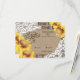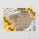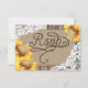 Sunflowers, aged wood planks, and lace over linen-look background rustic country western wedding RSVP card design.