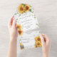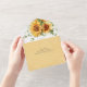 The heart of this All-in-One wedding invitation design is the beautiful watercolor illustrations of sunflowers and vines. These elements exude warmth, positivity, and a touch of rustic charm, making them perfect for a country-themed wedding celebration. The All-in-One wedding invitations are both beautiful and practical by combining the wedding invitation with an easy to remove perforated RSVP postcard. They are also quick and easy to prepare for mailing. Simply address the invitation, fold the back flap and seal with the included clear stickers. Once your guests receive the pre-addressed invitation they simply tear off the perforated RSVP card and drop it in the mail. The addition of the QR code allows your guests to easily access your wedding website for information including reception details and dinner choices! Simply replace the sample URL with the URL from your wedding website.