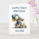 Celebrate a little one’s big milestone with this adorable country teddy bear 1st birthday card. Dressed in a shady hat and blue scarf, the sweet bear sits beside a one-candle birthday cake while holding a bunch of balloons; perfect for delivering heartfelt birthday cheer.