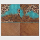 This design features faux leather elements with turquoise marble and leopard print with brown faux leather.