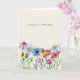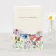 Country cottage wildflower birthday card, titled wishing you a wild birthday, which you can edit if you wish, along with the greeting inside. The design has a floral border of colourful wild flowers in pink blue red and yellow with a matching bouquet on the back.