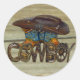 This classic round sticker features country wood cowboy designed by deluxephotos.