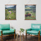 Transform your living space into a serene summer retreat with this Tapestry featuring a picturesque rural landscape with rolling blue hills, lush green pastures dotted with cows, and delicate wild pink roses. It will will transport you to a simpler time, allowing you to escape the hustle and bustle of everyday life. This picturesque scene evokes a sense of peace and warmth, creating the perfect ambiance for your rustic, cozy cottage or farmhouse style home interior. You can delete the text “Happiness is like a field you can harvest every season” or replace it with your own message (click "Personalize this template").