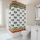 Un rideau de douche ludique avec un motif répétitif de visages mignons de lapin blanc sur le noir avec des bordures joyeuses avec des rayures horizontales et des pois géants dans un mélange de rouge tomate, jaune ensoleillé, noir et blanc. Un regard fantasque pour les enfants et les jeunes de coeur!