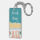 Illustration moderne d'un couple se reposant sur la plage. Porte - clé Beach house.
