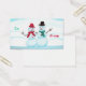 Peinture d'un couple de neiges en casquette et écharpes, agitant le, imprimé sur carte de visite, à utiliser comme étiquettes cadeaux.