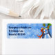 Ce design étiquette de adresse de vacances d'hiver présente deux pingouins enchanteurs portant des casquettes de vacances colorés. Ils sont debout sous le pied de mistletoe contre un charmant arrière - plan de flocon bleu et blanc. Quelques graphiques de AMBillustrations© https://www.etsy.com/shop/AMBillustrations.