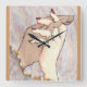 Couple Holding Hands Wall Clock, by Kristie Hubler, with handpainted image of couple holding hands, painted on satin silk, lady has a diamond ring, bottom trimmed with a gold line and embroidered faux pearls