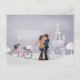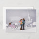Couple in Snowy Paris with Eiffel Tower Postcard