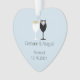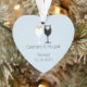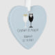 Ce ornement de coeur présente un art vinaigrette stylisé d'une mariée et d'un marié avec espace pour les noms des couples et la date du mariage. C'est un cadeau parfait pour les mariages de Noël ou d'hiver.
