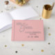 This guest book offers the perfect place for your friends and family to pen their signatures and heartfelt messages. Crafted from premium materials, it features the titles 'Mr and Mrs' in a sophisticated gold script, all set upon a chic, sophisticated blush peach pink background. Customize it with your family name and the date of your wedding to make it uniquely yours. This treasured memento will act as a lovely token of your special day for many years.
