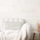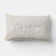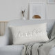Custom-designed wedding gift lumbar pillow for the newlyweds featuring modern beige design with personalized couple's name and date.