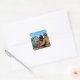 Cute stickers for someone who likes hiking and the mountains. Couple having a romantic moment sitting on a bench look at a scenic view.