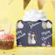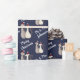Unique, red and navy blue personalized Christmas wrapping paper with cute cats love couple with Santa hats and custom last name.