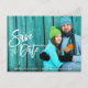 Modern Brush Script Save The Date Engagement Couple Photo Postcard
