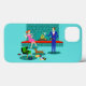 Ce Coque Retro Couple with Dog iPhone 6 ressemble à une scène d'une comédie romantique. Le style des années 1960, minimaliste design d'art, dispose d'un couple séduisant qui profite d'une soirée romantique à la maison. La salle sophistiquée est dotée d'un aqua et d'une cheminée en brique turquoise avec une corniche rouge vif. Une belle femme rousse portant une robe rose et brillante est perchée sur la corniche. Elle savoure un martini avec une olive flottante, un feu rugissant, une bonne musique, et la compagnie un homme grand, sombre et beau. L'homme porte un costume bleu et une cravate rouge. Son martini verre est élevé pour trinquer son charmant compagnon. D'autre part, il tient un album vinyle. A ses pieds, on voit un dachshund des plus adorables portant un collier rouge. Le chien éveillé se déplace dans la direction d'un joueur de disque vert avec des pattes oranges et broches. Au sol, il y a un groupe coloré de disques vinyles amusants, éclectiques. Santé! Voici la soirée parfaite à la maison.