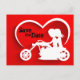 ~Silhouette Couple Riding a Motorcycle with Heart Save the Date Wedding Notice in Red, White and Black.