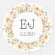 Simple and elegant botanical theme wedding sticker featuring the couple’s initials surrounded by wildflowers.