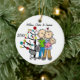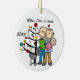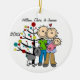 A pretty round ceramic keepsake Christmas holiday ornament features a stick figure couple with a baby girl in a pink blanket and a grey dog standing in front of the decorated Christmas tree with areas you can easily customize with your names and date to the current year! This beautiful holiday keepsake ornament makes a great gift for anyone who had a new baby girl in the current year!